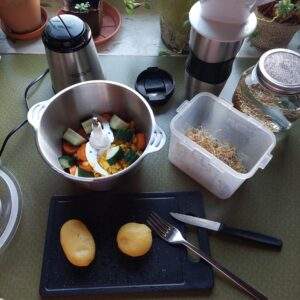 Nach meinem zweiten Frühstück arbeite ich etwas an meinem Blogbeitrag #malenimwald 51-60 und erstelle die Fotogalerie. Und über den Tag werde ich auch schon am Blogbeitrag #12von12 arbeiten. Um 11:00 Uhr bereite ich mit Stephan das Essen vor. Plötzlich überfällt mich eine bleierne Müdigkeit und ich ziehe mich zurück.