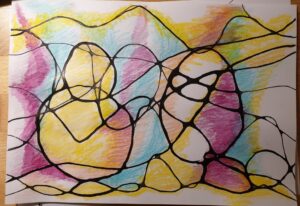 Im Rahmen meines Neurographik-Basiskurses bekam ich als Hausaufgabe das Modell „Auflösung von limitierenden Einschränkungen“ – konkret: eine Entladung und Transformation zum Thema LEBENSZEIT, rückblickend auf die Jahre 1967 bis 2021.